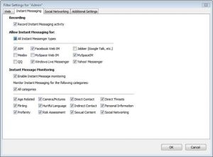 Also from the Admin Panel you can configure and monitor particular things for Instant Messaging, like allowing which software to be used for chat and what content categories to be monitored.
